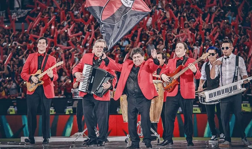 🎧 Avanti, Los Palmeras! O jornalista Leo Lepri começou no Instagram a série La buena música, dedicada a histórias em que futebol e música latino-americana se cruzam. No episódio mais recente, ele lembra a apresentação do grupo argentino Los Palmeras na final da Copa Sul-Americana de 2019. Antes de a bola rolar, um estádio inteiro cantou junto uma banda com mais de 50 anos de estrada, que é praticamente sinônimo da cumbia santafesina. Veja aqui.